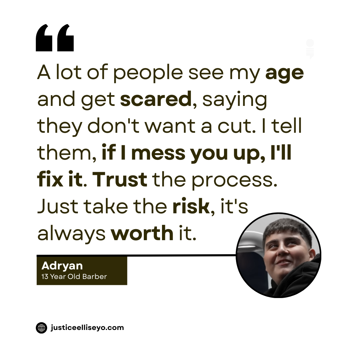 Adryan, a 13 Year Old Barber, says:
