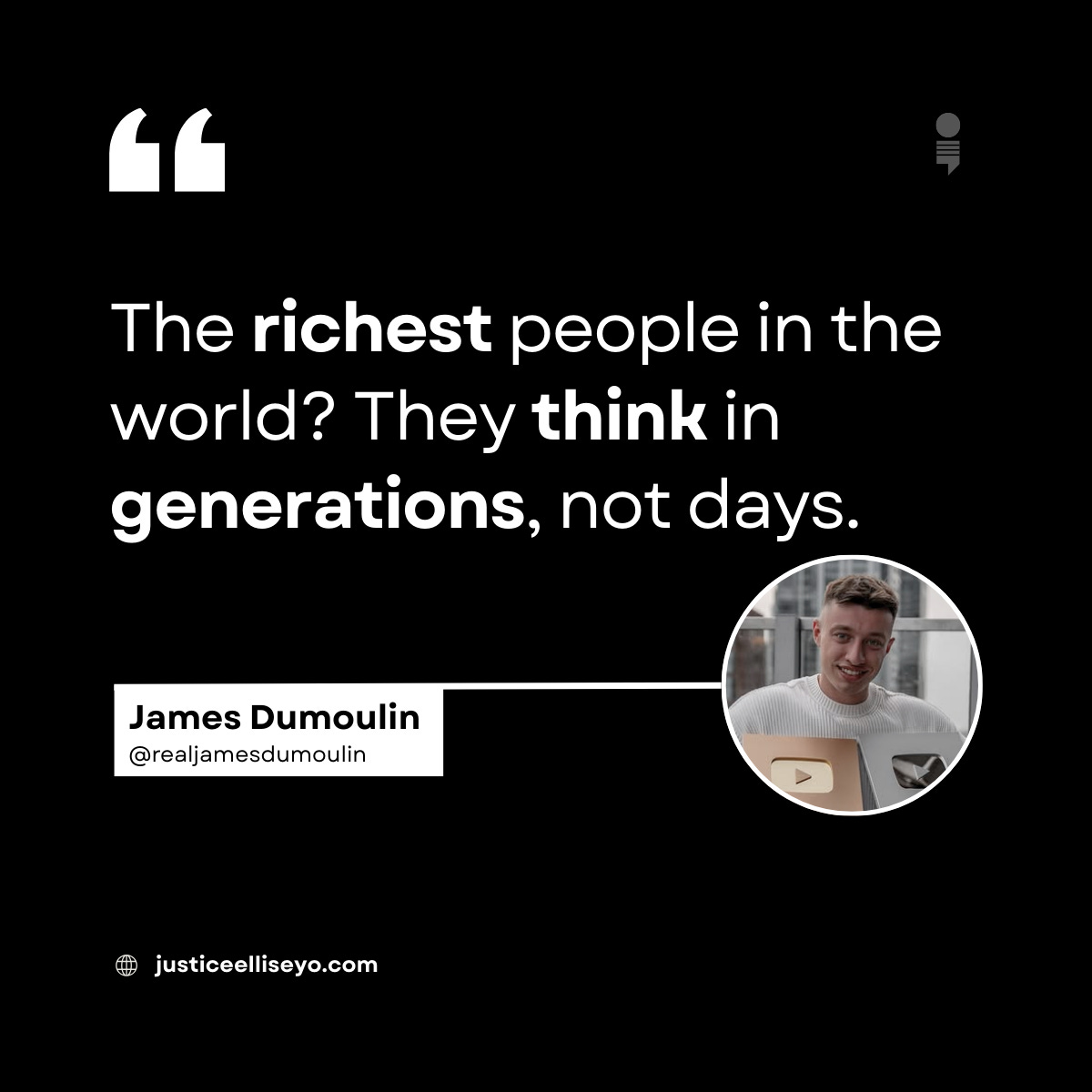 James Dumoulin has interviewed hundreds of millionaires and billionaires. He says, “The richest people in the world? They think in generations, not days.