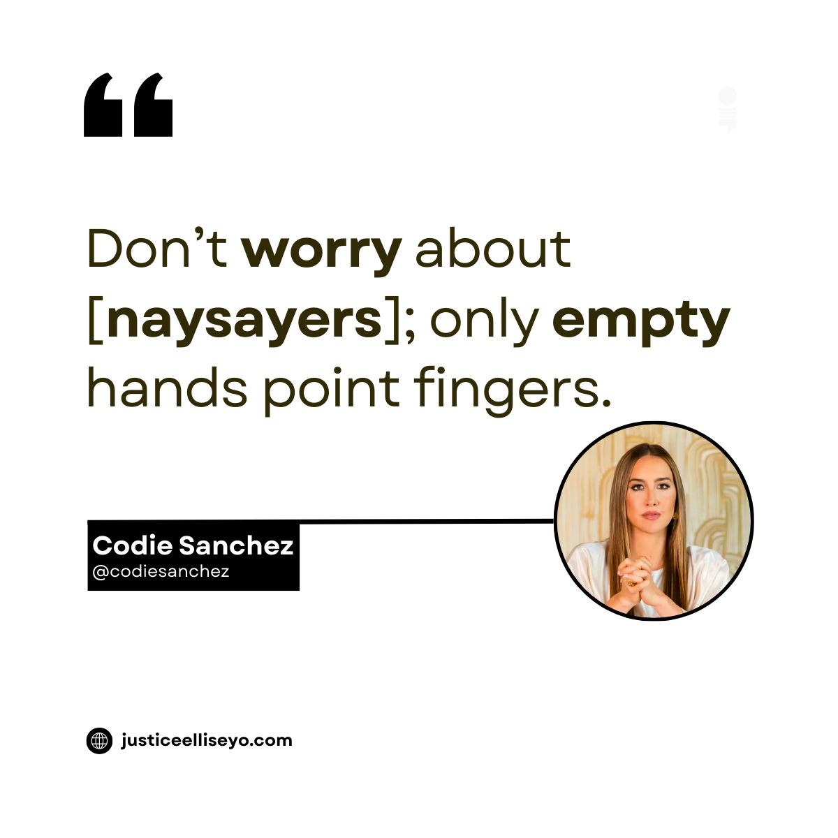 If you can, dismiss them like Codie Sanchez because “only empty hands point fingers.”